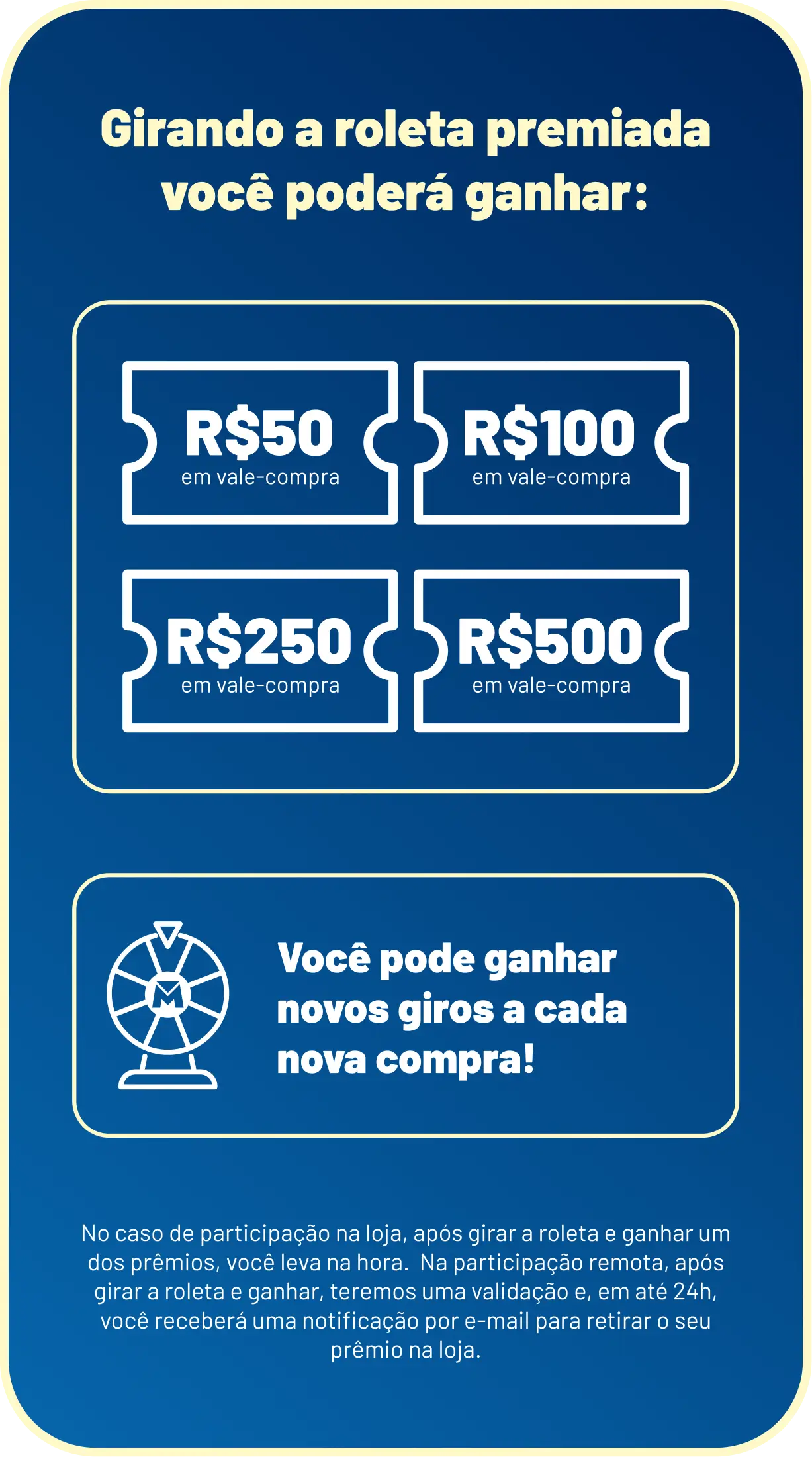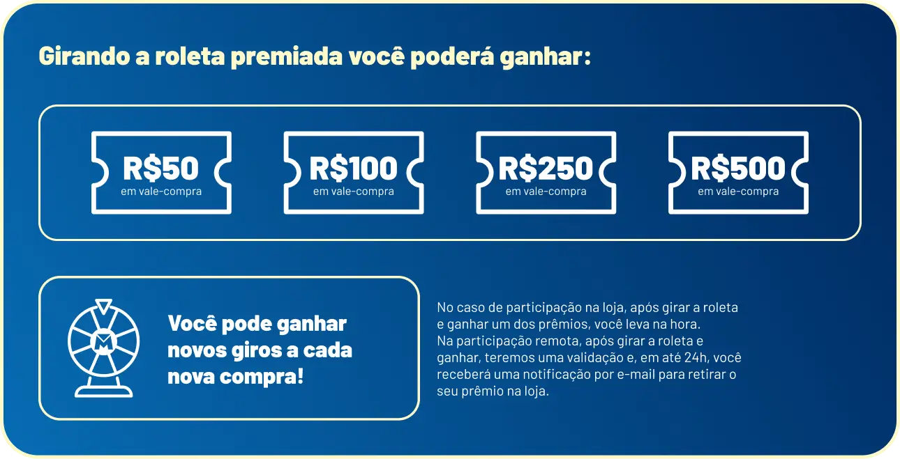 Qual é o valor mínimo de compra necessário para girar a roleta?